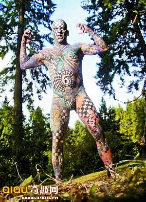 棋盘图案文遍全身98%部位,连舌头也未能幸免