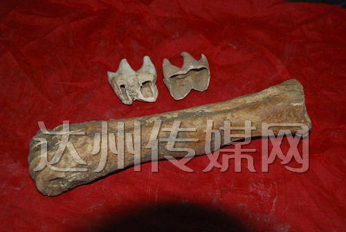 “肯定是古生物化石!”懂些生物常识的汪孝斌大声地说,“我们再找找看,可能还有!”汪孝斌和王义平继续扩大寻找范围,不一会儿就在一米开外又发现一大块牙齿化石。这块化石与先前那块类似,都由成排的牙齿组成,化石长约23厘米,宽约9厘米,每块重约1.5公斤。还发现了一些腿骨一样的东西和几块已钙化的小块古生物化石。