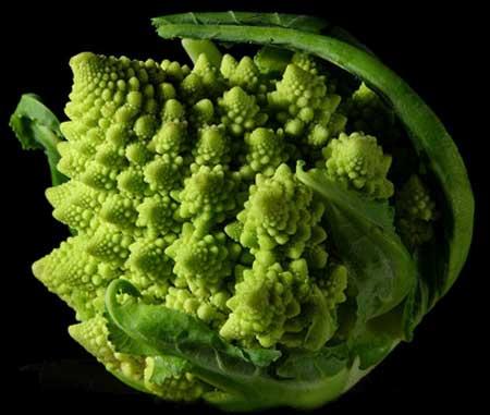 罗马花椰菜是一种可食用的花椰菜,16世纪发现于意大利。这种花椰菜长相特别,花球表面由许多螺旋形的小花所组成,小花以花球中心为对称轴成对排列。罗马花椰菜的神奇在于其规则和独特的外形,已经成为著名的几何模型。罗马花椰菜以一种特定的指数式螺旋结构生长,而且所有部位都是相似体,这与传统几何中不规则碎片形所包含的简单数学原理相似。罗马花椰菜有着规则和严密的数学模型,因此吸引了无数的数学家和物理学家加以研究。